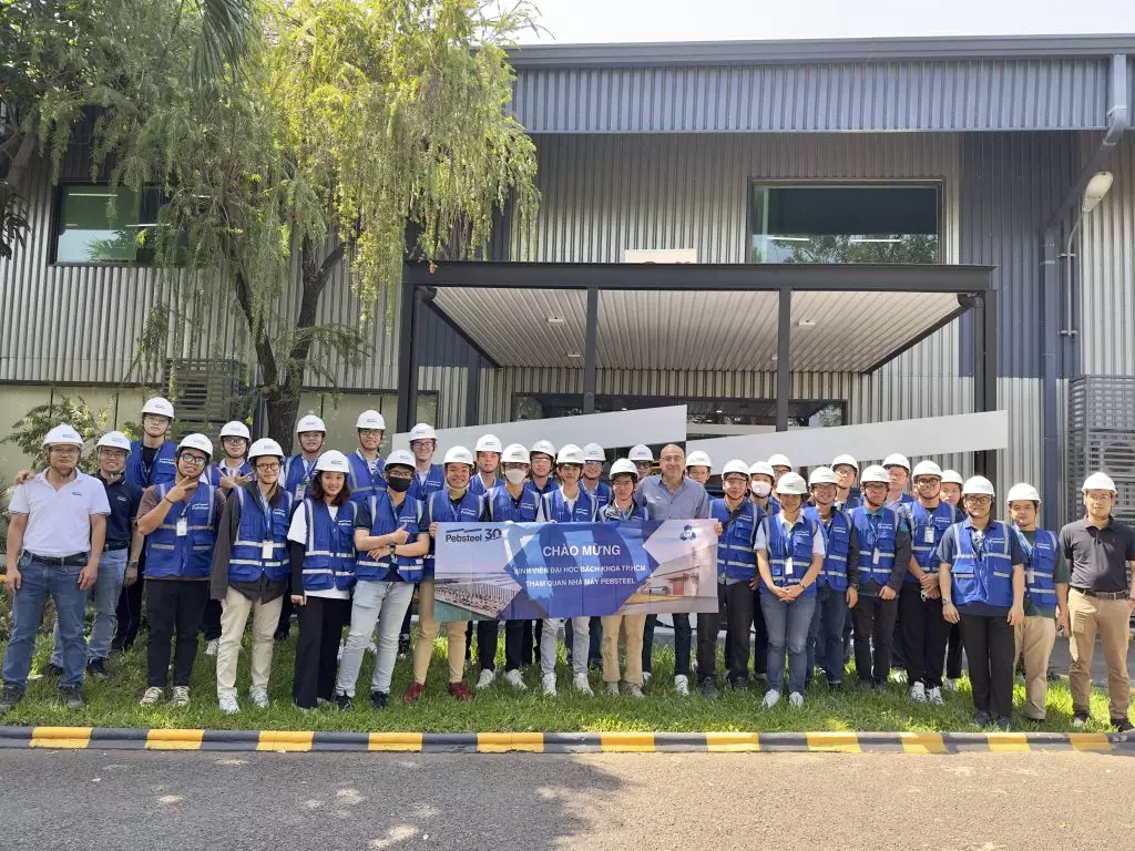 Vào ngày 21/11/2023 vừa qua, Pebsteel đã chào đón đoàn sinh viên Chương trình chất lượng cao, Cử nhân tài năng và Chương trình đào tạo kỹ sư chất lượng cao Việt – Pháp khoa Kỹ thuật xây dựng thuộc Đại học Bách Khoa – Đại học Quốc gia TPHCM tham quan nhà máy Pebsteel tại Vũng Tàu.